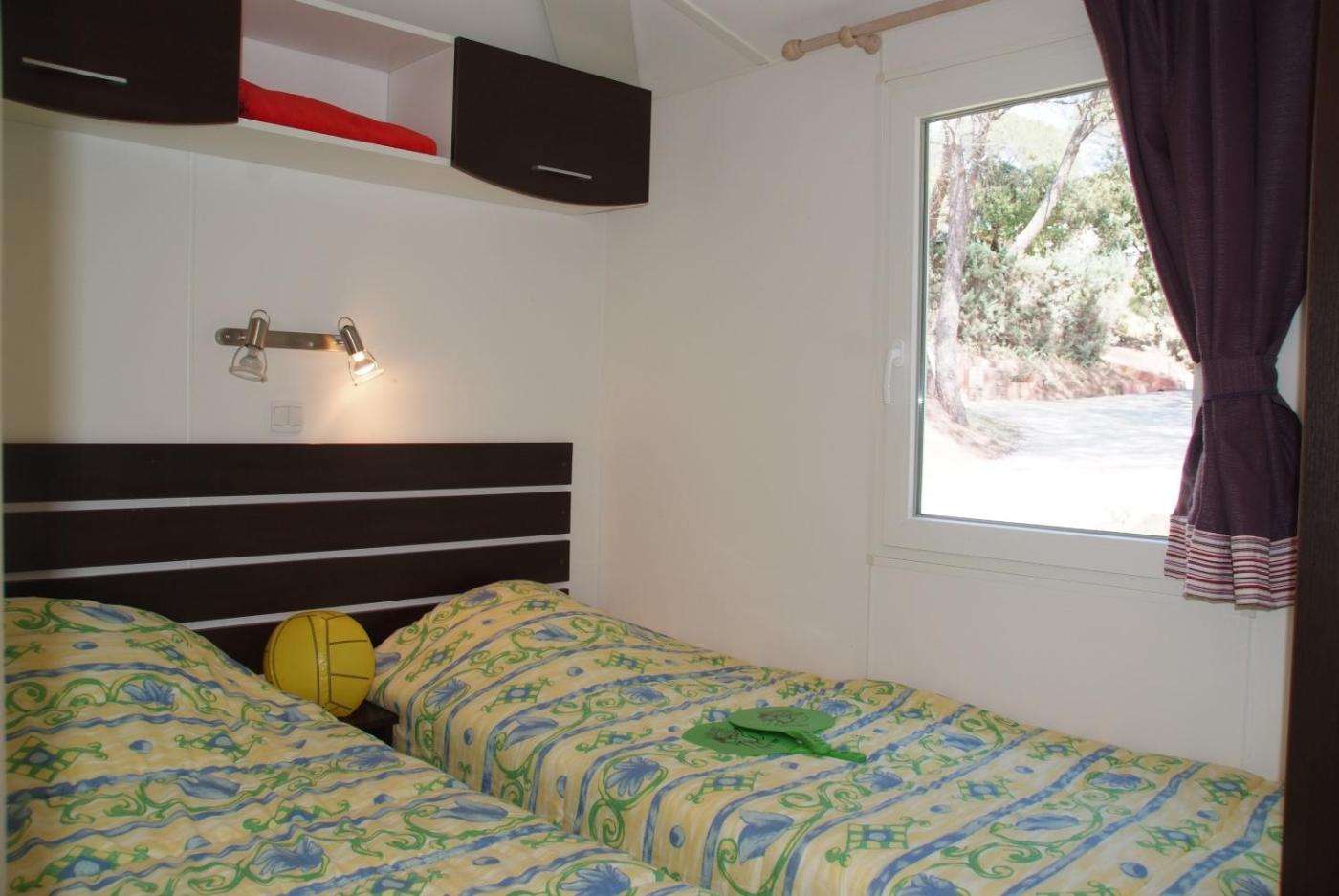Mobile Home. This air-conditioned mobile home is comprised of 1 living room, 2 separate bedrooms and 1 bathroom with a shower. The well-equipped kitchen features a stovetop, a refrigerator, kitchenware and a microwave. Featuring a terrace, this mobile home also offers a coffee machine, a seating area and a flat-screen TV. The unit offers 3 beds. ;
