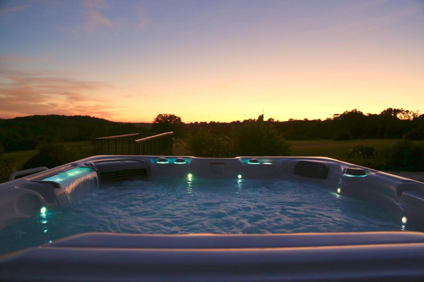 Three-Bedroom House. This double room has a satellite TV, fireplace and patio. Guests can use the 6-seater hot tub for free. It has multi-coloured lights and an integrated music system.
